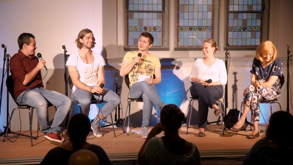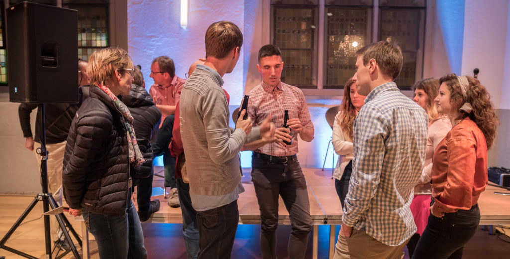 Miteinander statt übereinander reden… Dieses Motto von christchindli war nach der Podiumsdiskussion Nightshift in der Markuskirche Luzern ganz praktisch zu sehen! Podiumsgäste kommen mit dem Publikum ins Gespräch.